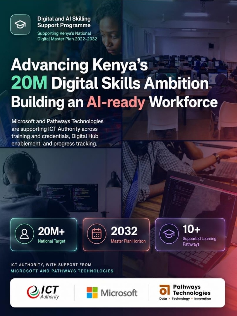 The Kenya Government through the ICT Authority has rolled out Digital skills training to 20 Million Citizens. The overall objective of the digital skills programme is to equip the Kenyan citizenry with the relevant Digital skills to operate effectively under the digital economy. The training includes;